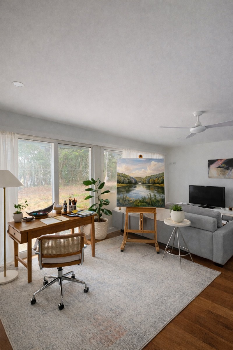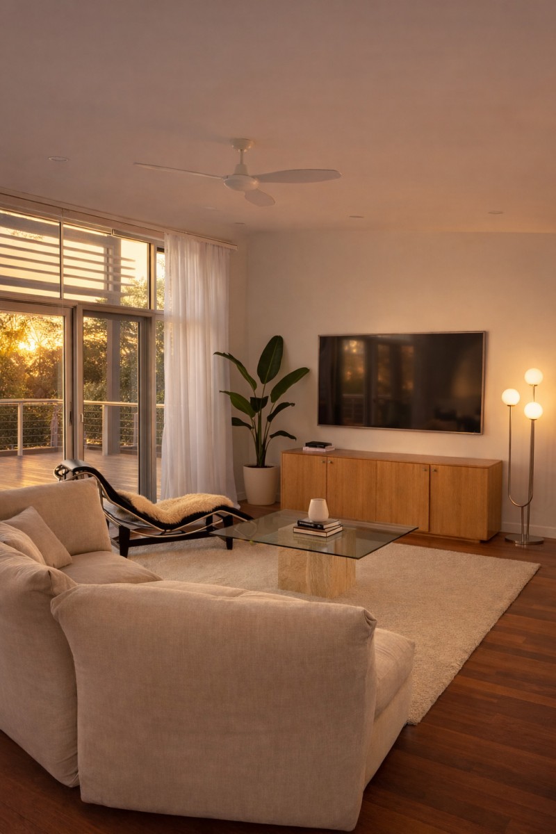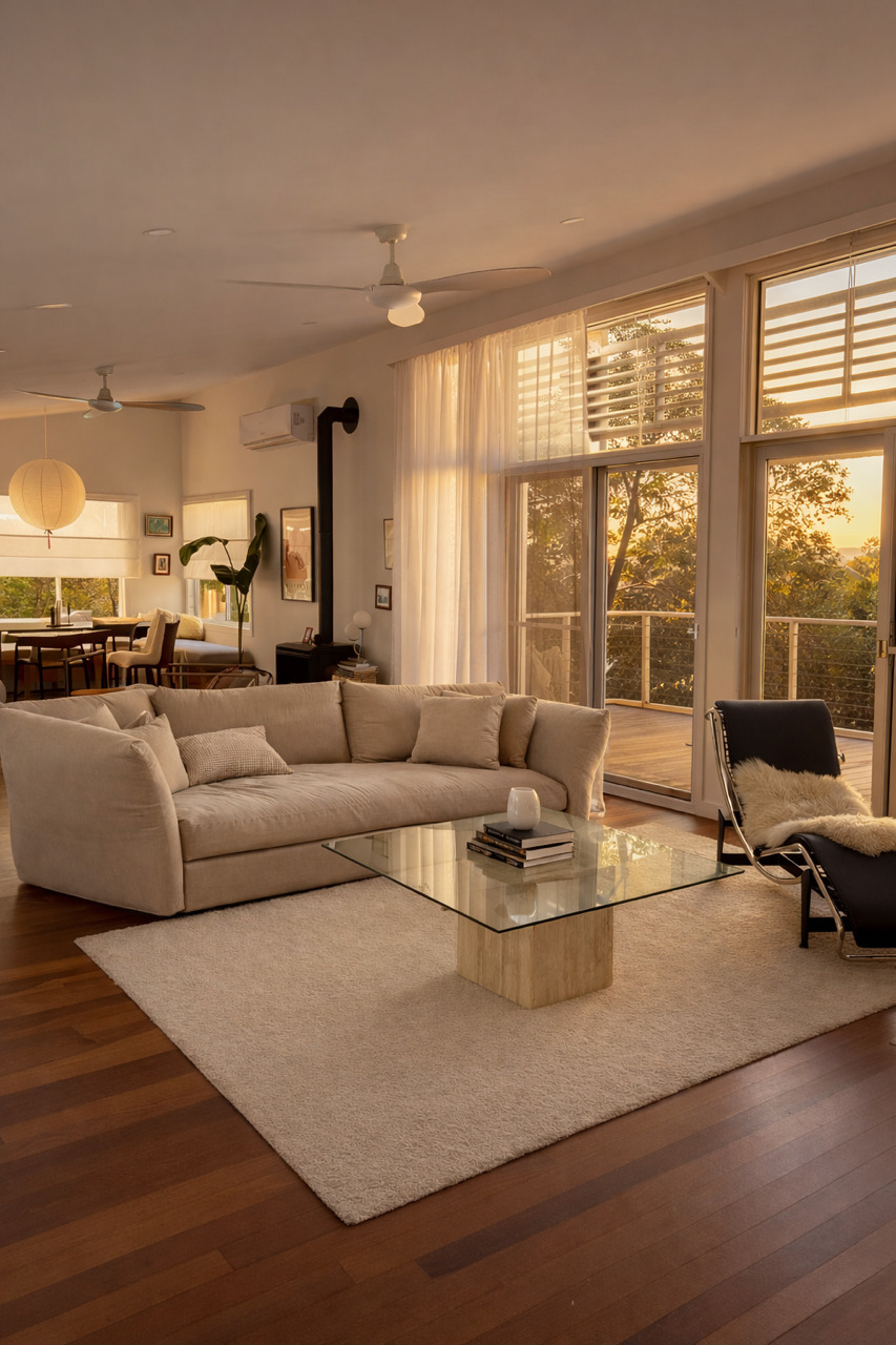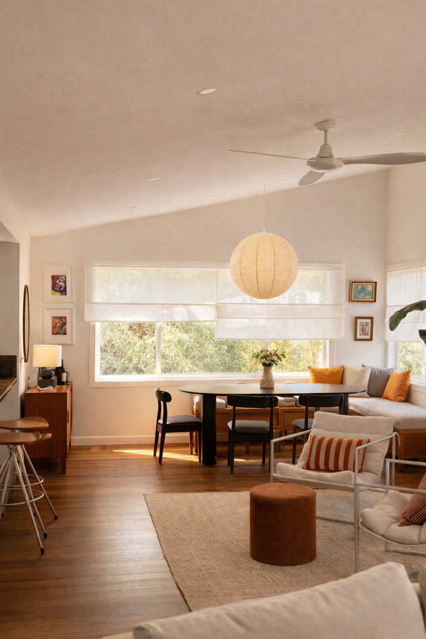 Light-filled open-plan living with dual-aspect windows
