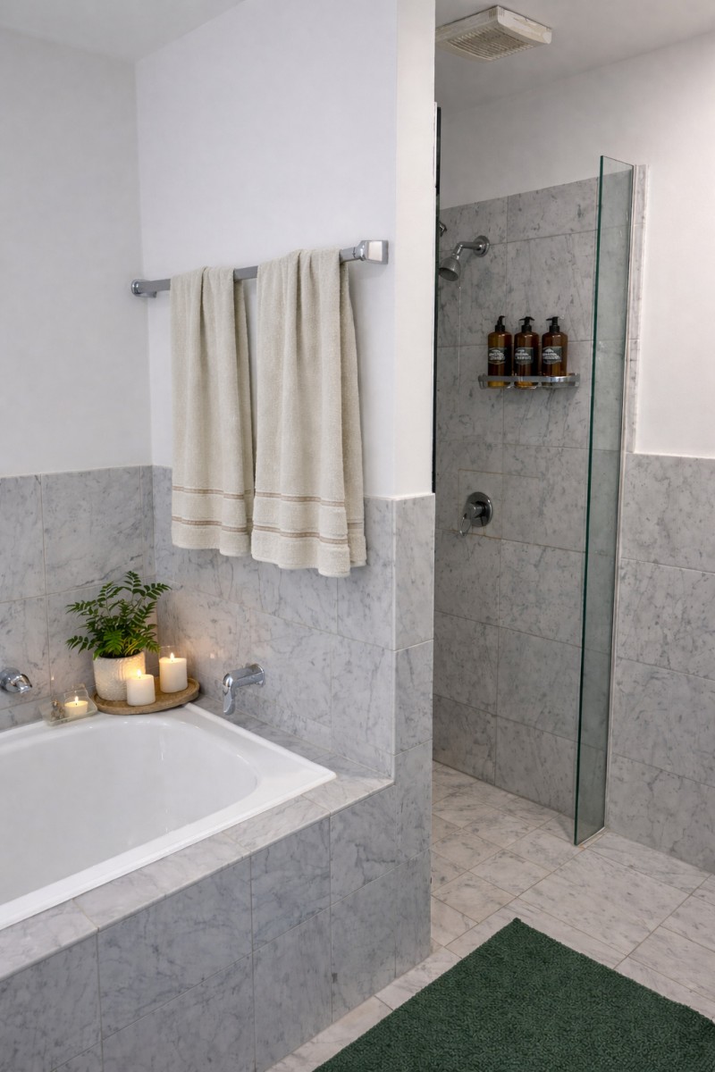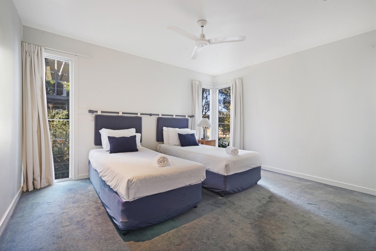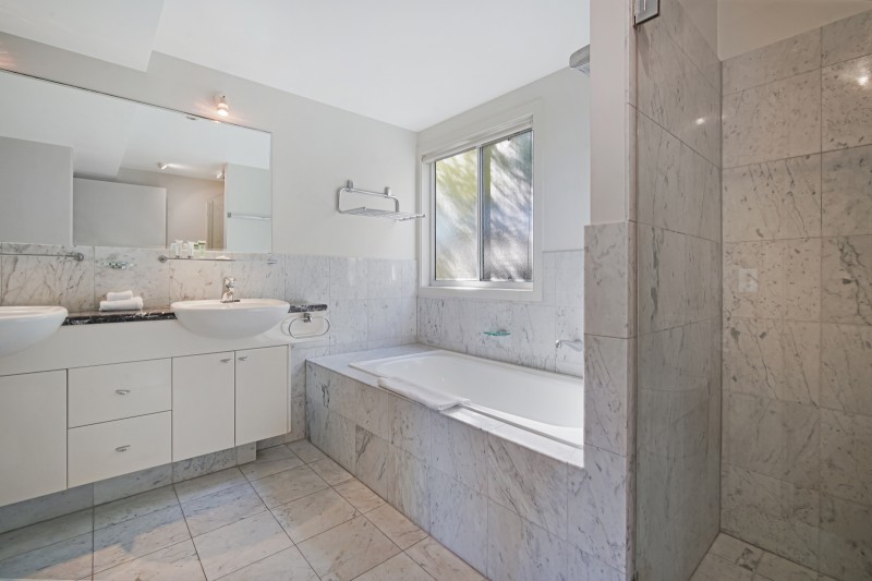 Master bedroom with water & tree views + ensuite with bath